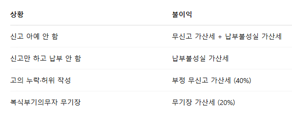 👉 단순히 ‘깜빡하고 안 냈다’ 해도 20% 가산세가 붙습니다.
